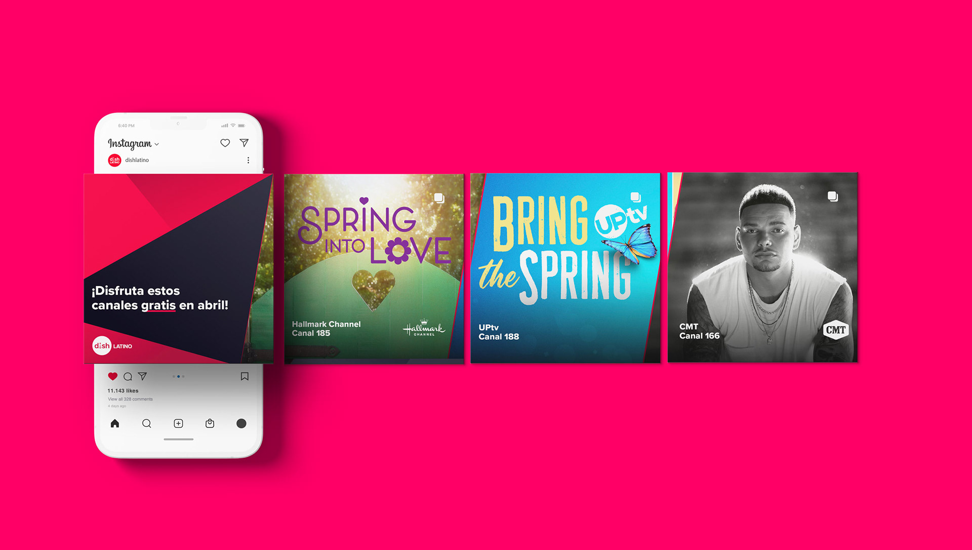 Enjoy these channels free this April! | Creative Credits DishLATINO Series: Art Director: Chad Hangen | Graphic Designer: Aldo Ruiz | Copywriter: Rogelio Millan | Proofing: Tom Auclair